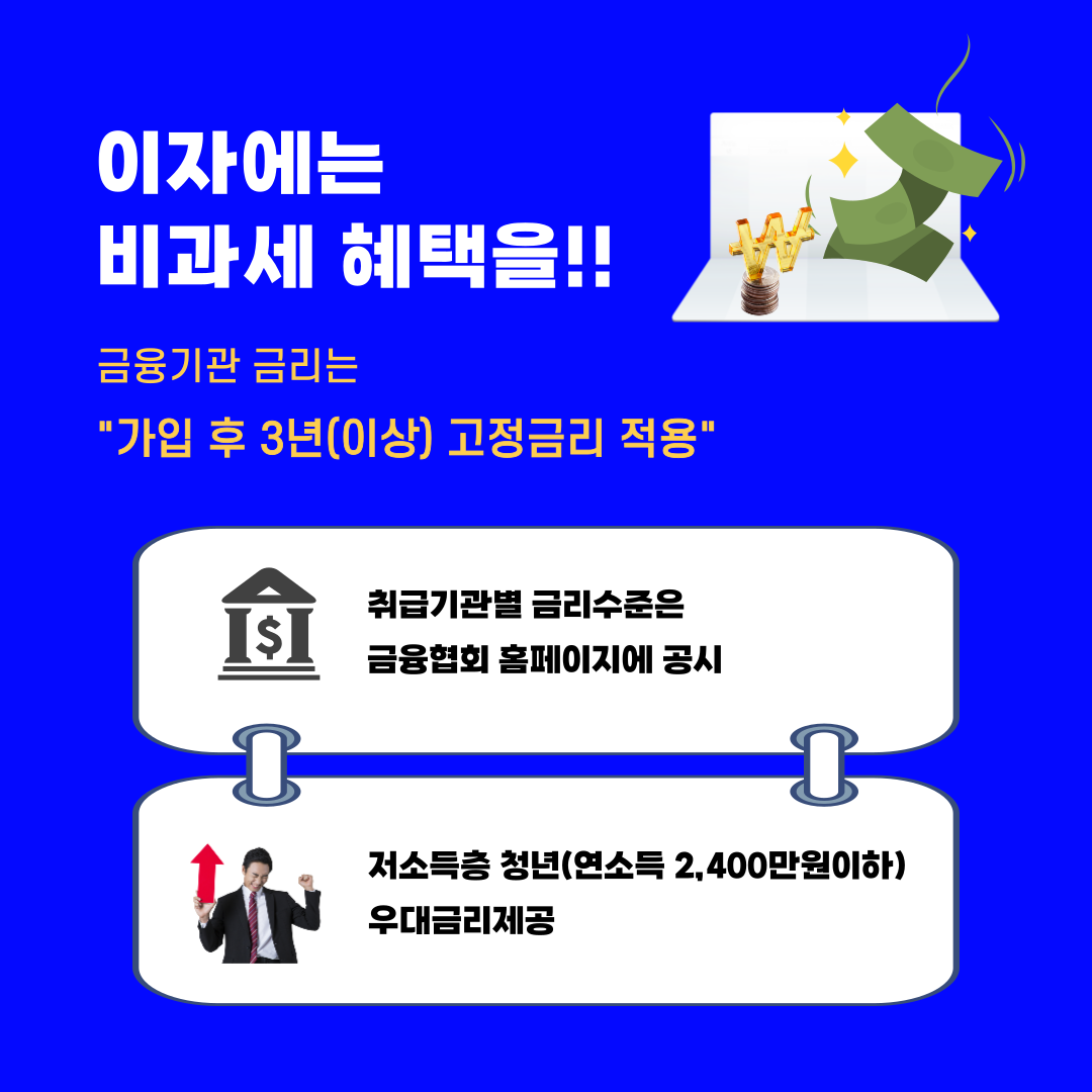 ▶ 가입 후 직전(2023년) 소득이 가입 기준에 충족되지 못하면 비과세 혜택 비적용 될 수 있습니다.